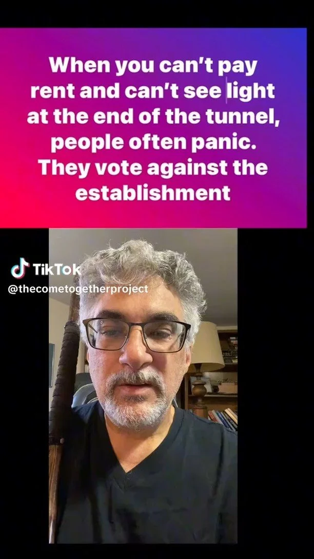 The Come Together Project wants to find the places we agree and FOCUS our society on those areas. We want to take power back from the wealthy elites and corporations, not just in politics, but in our culture and society too. We want an America that focuses on making us all better, not on setting us at each other’s throats.